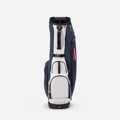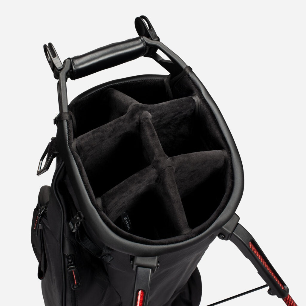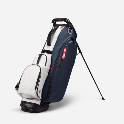 - ※VESSELのスタンドバッグは、スタンドを広げた状態での使用を前提に設計・製造されております。クラブを入れたままで、スタンドをたたみバッグを立てた場合、バッグが傾いたり、転倒する恐れがございます。ご使用に当たっては、スタンドを広げた状態でご利用ください。